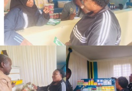 MKURUGENZI Mtendaji wa Halmashauri ya Wilaya ya Songea Ndugu Neema Maghembe akisikiliza maelekezo ya kilimo na ufugaji bora alipotembelea banda la Halmashauri ya Wilaya ya Songea katika maonesho...
