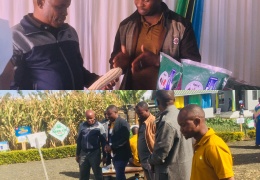 MKURUGENZI Mtendaji wa Halmashauri ya Wilaya ya Songea Ndugu Neema Maghembe akisikiliza maelekezo ya kilimo na ufugaji bora alipotembelea banda la Halmashauri ya Wilaya ya Songea katika maonesho...